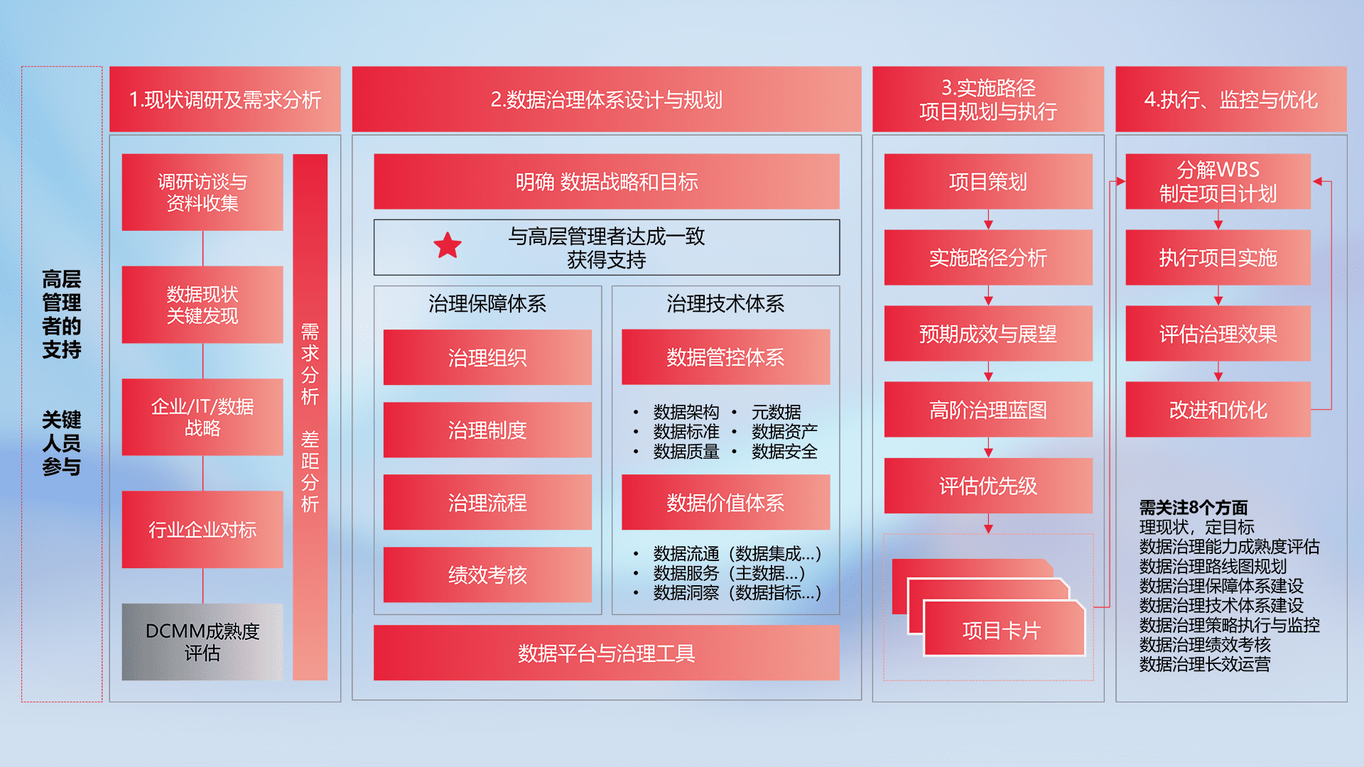 制定并执行统一的数据标准,,,,规范数据定义和格式,,,,消除冗余和不一致性,,,,实现跨部门和跨系统的数据一致性,,,为企业提供标准化的数据基础。。。。
